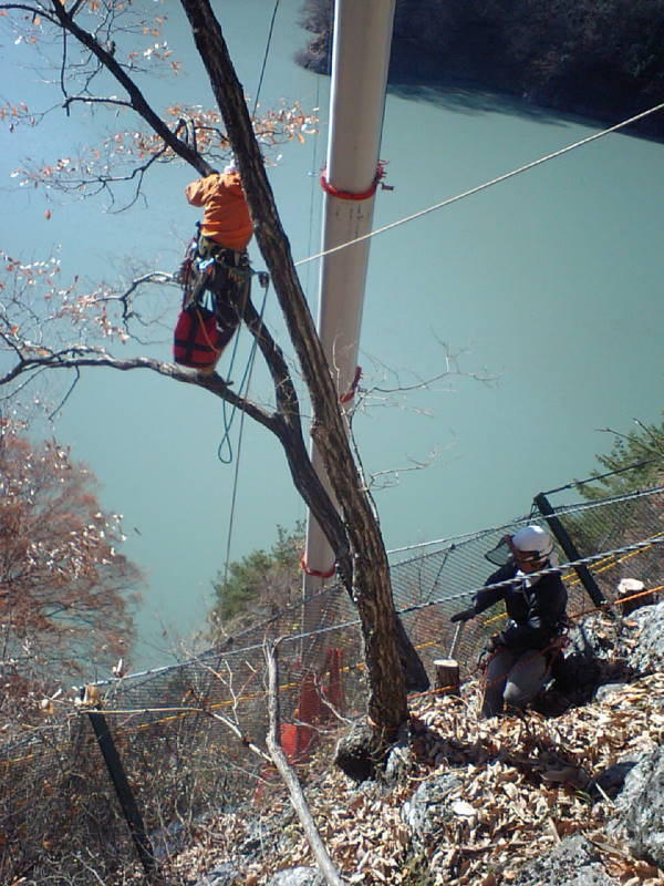ロープを使ったツリークライミング(R)の技術も導入して日々技術向上、安全性と効率アップに努めています。