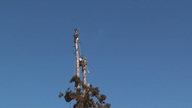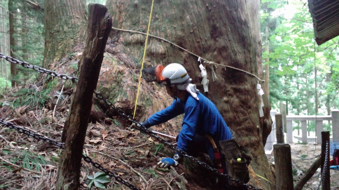ロープを使ったツリークライミング(R)の技術も導入して日々技術向上、安全性と効率アップに努めています。