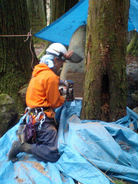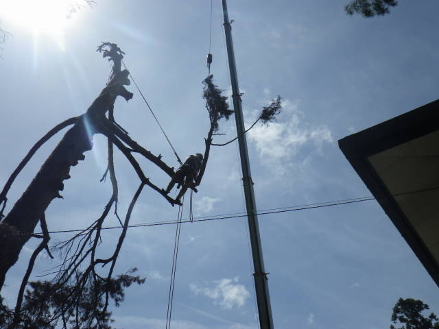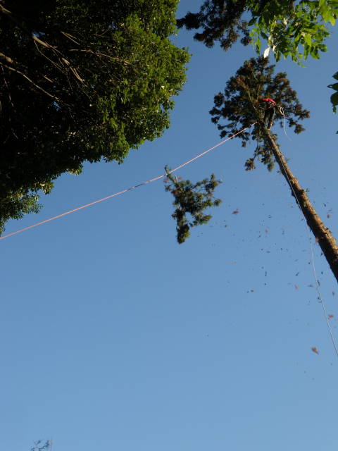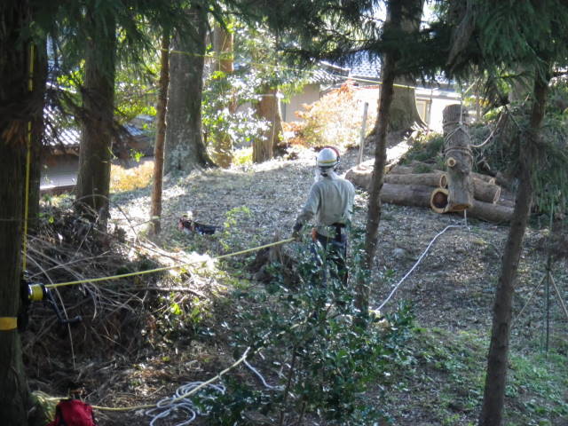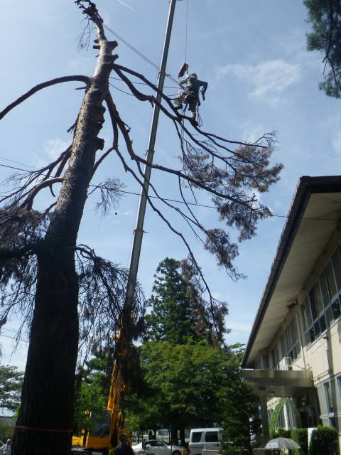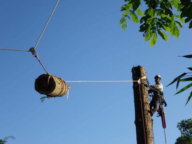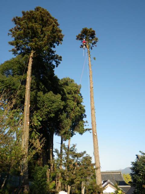 ロープを使ったツリークライミング(R)の技術も導入して日々技術向上、安全性と効率アップに努めています。