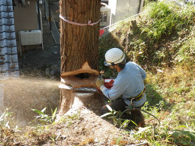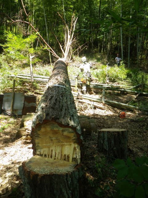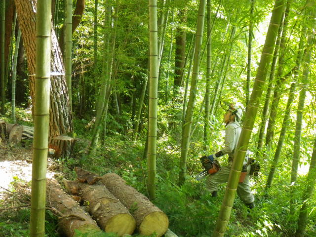 特伐とは、木を伐採するのに刃物だけではなく、道具や重機を使って伐採する作業のことを言っています。