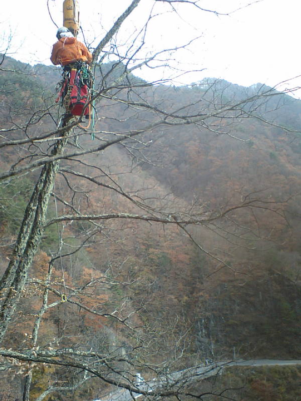 ロープを使ったツリークライミング(R)の技術も導入して日々技術向上、安全性と効率アップに努めています。