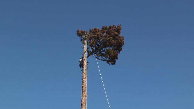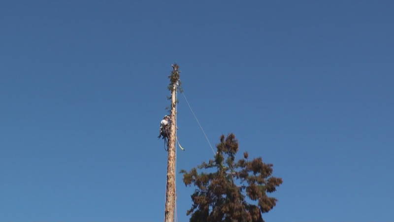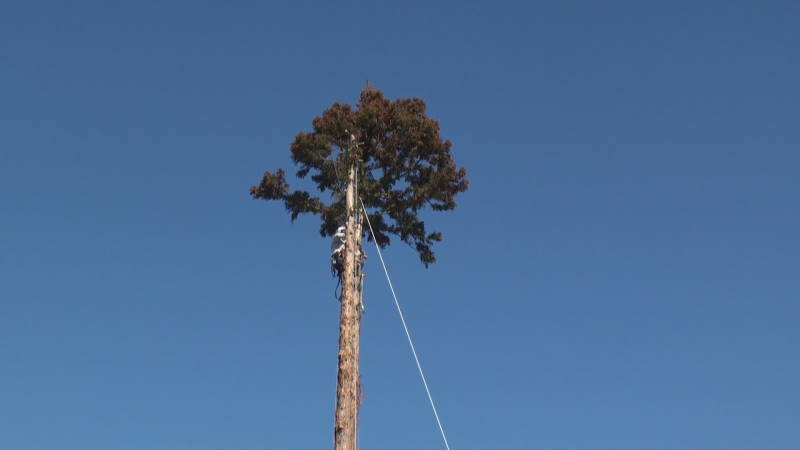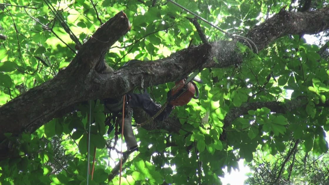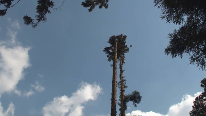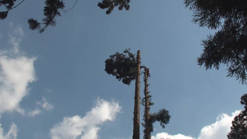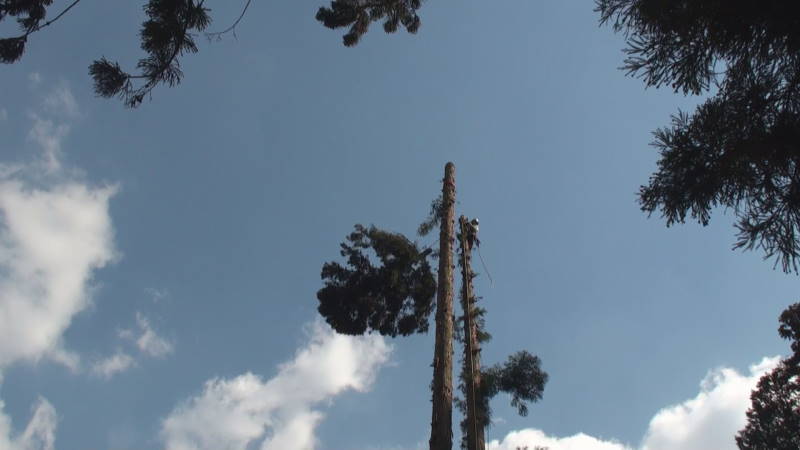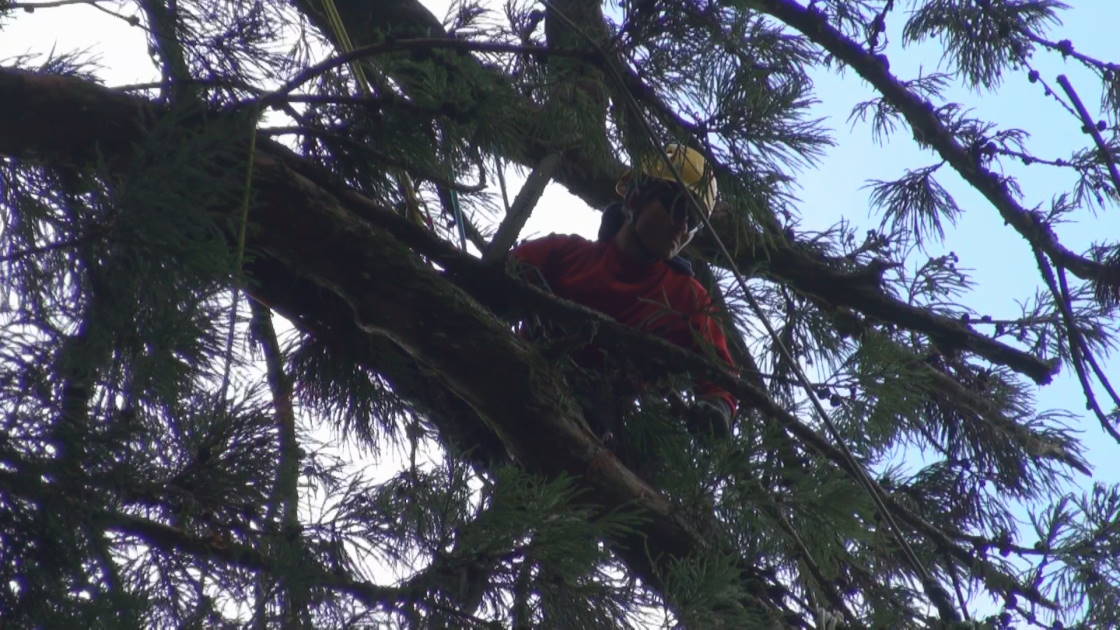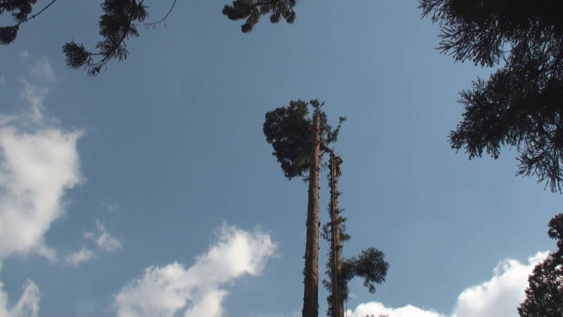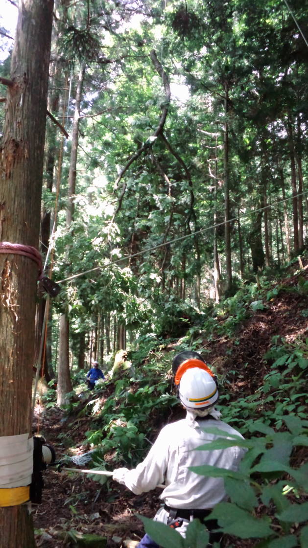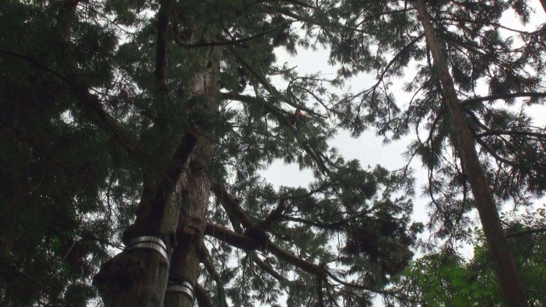 ロープを使ったツリークライミング(R)の技術も導入して日々技術向上、安全性と効率アップに努めています。