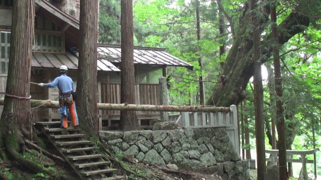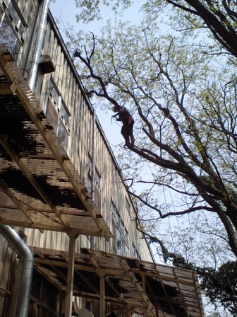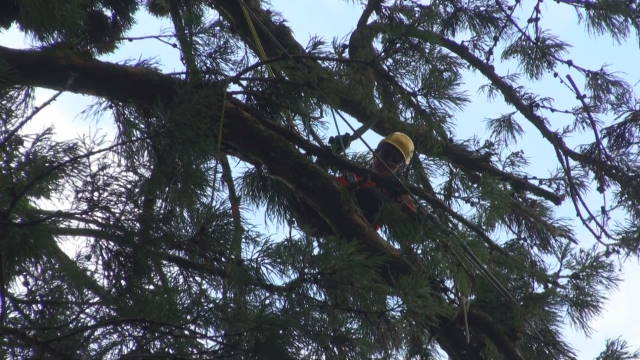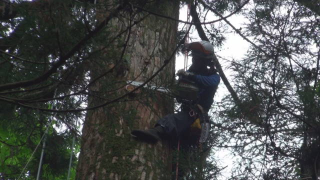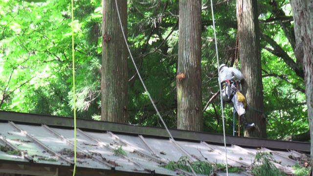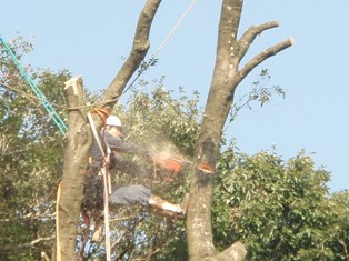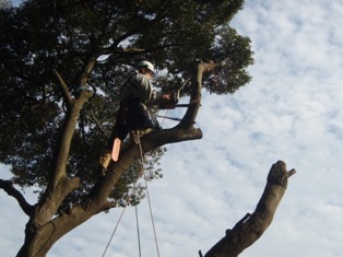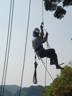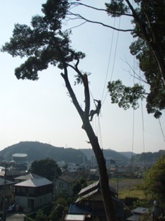 ロープを使ったツリークライミング(R)の技術も導入して日々技術向上、安全性と効率アップに努めています。